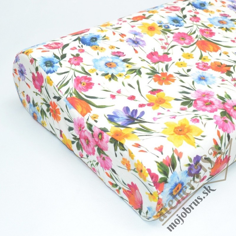 Farebné kvety na bielej - obliečka na anatomický vankúš