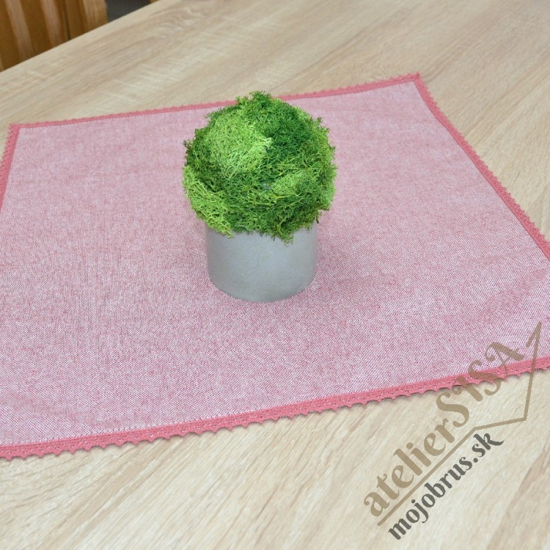 Staroružový štvorcový obrus je ušitý z dekoračnej látky vyššej gramáže lemovanej po obvode tenkou bavlnenou paličkovanou čipkou. Kvalitný materiál a atraktívny dizajn dodá vašej obývačke, kuchyni alebo jedálni úplne nový vzhľad. Vhodný je na menšie príručné stolíky a komody.