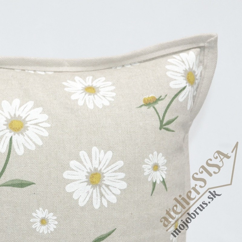 Margarétky na režnej - obliečka na dekoračný vankúš