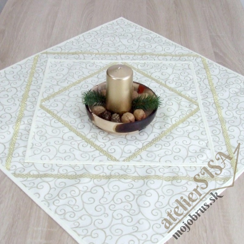 Zlatý krútený vzor na maslovej - vianočný štvorcový obrus